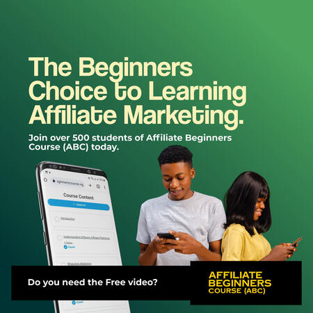 This is called Google Ads and you'll be able to learn and implement this using just your smartphone. Plus Access to YouTube marketing.So are you ready for this journey as an Affiliate Beginner? They're all about you. I'm ready to help you succeed. Are you ready?If YES, Then Affiliate Beginners Course(ABC) is all you need to access all these and get access to lifetime training/mentorship.Let Me Give You Access To Learn More About This.